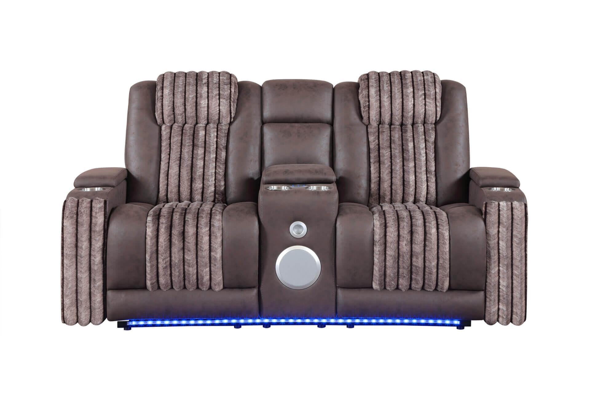 U8000 BROWN POWER RECLINING LOVESEAT W/ CONSOLE, POWER HEADREST, LED LIGHT, & BLUETOOTH SPEAKER