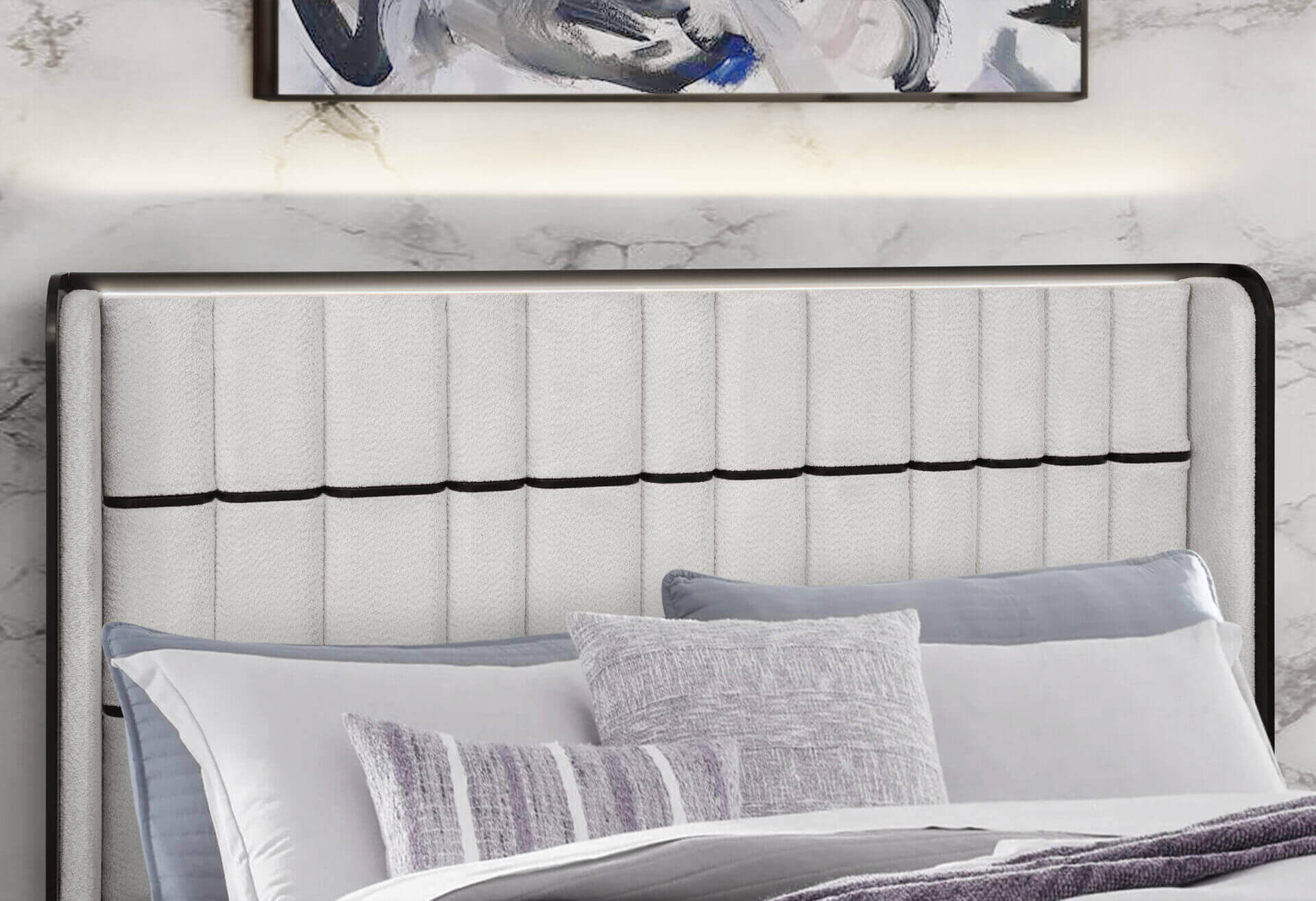 The Isabella White Bedroom Collection by Global Furniture is a luxurious, tech-savvy statement for the modern bedroom. Fully upholstered in a soft, elegant white fabric, each piece showcases a refined fluted design—delicately styled on the drawer fronts and more prominently featured on the headboard and footboard for added dimension and texture.