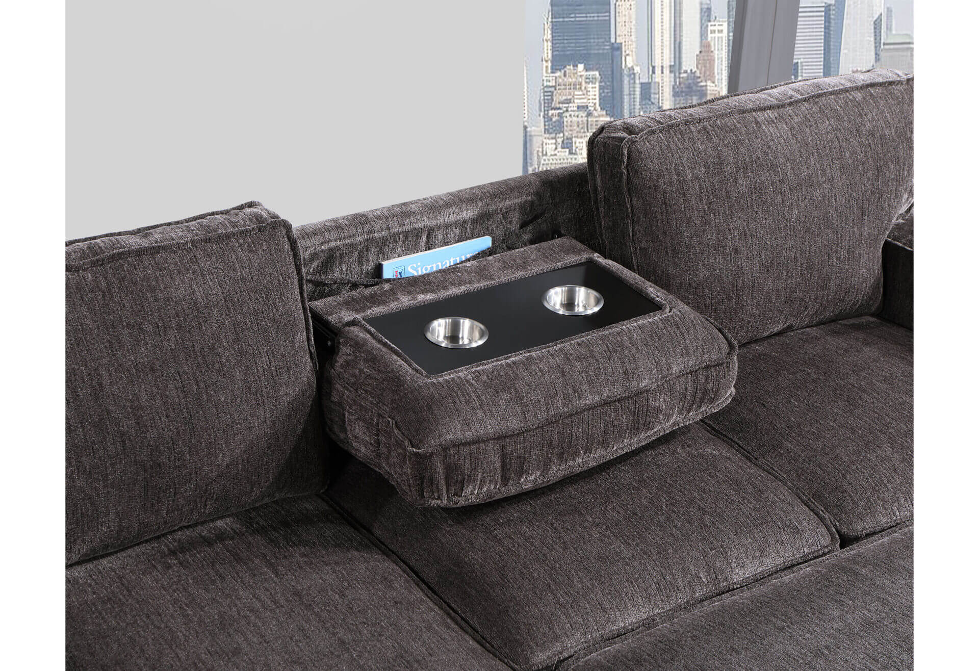 U0203 DARK GREY REVERSIBLE SOFA BED WITH USB