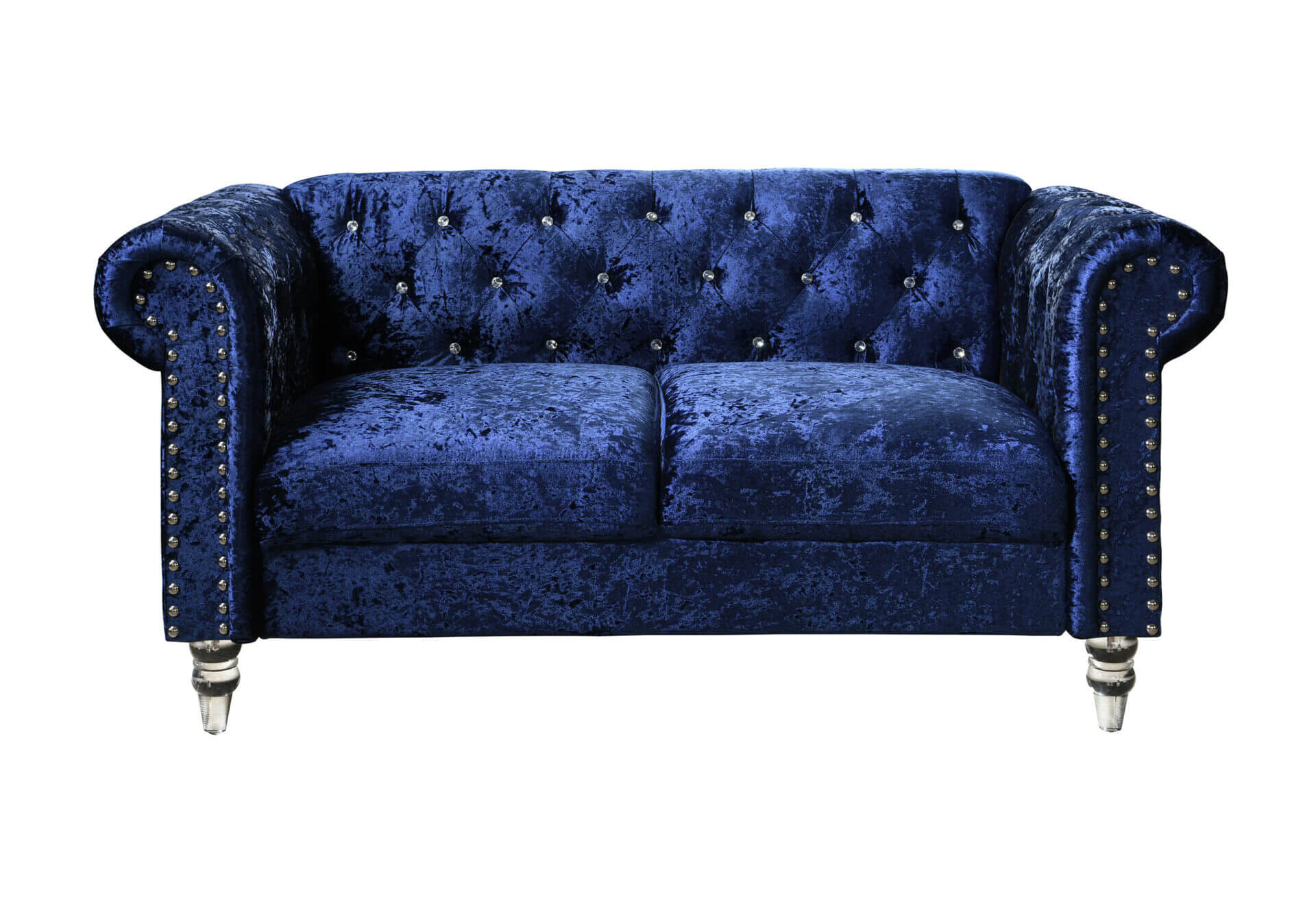 The 3 over 3 design has leather like fabric which makes for a comfortable feel and design. The rolled arm is accented by chrome nail heads and outlines the transitional style.